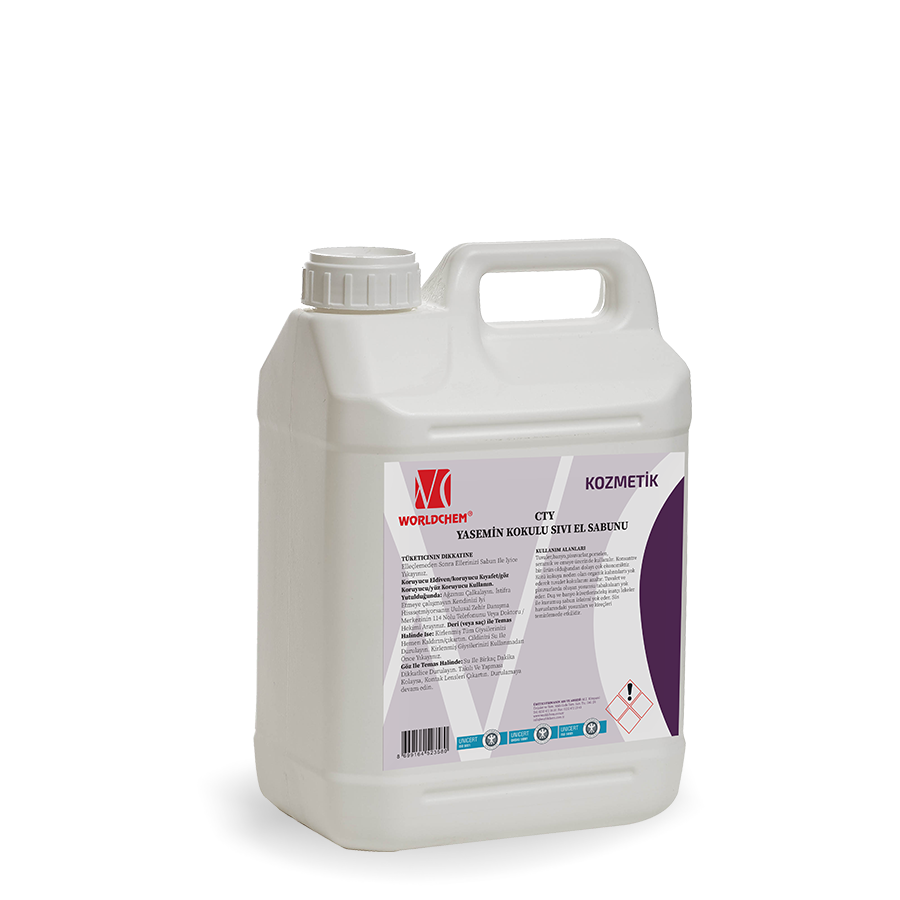 Worldchem CTY yasemin kokulu sıvı sabun yumuşak formülü ile cildinizi kurutmadan temizler. Hoş kokuludur. PH 5.5’tir.